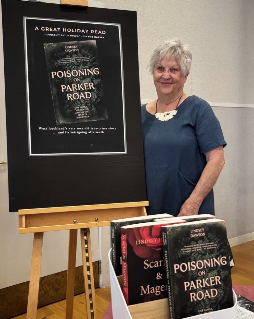 Please join us to hear Auckland author, artist and creator Lindsey Dawson speak about her recently published book Poisoning on Parker Road. Lindsey will talk about the story, and her journey researching and writing it. This murder occurred in Oratia in 1892, in West Auckland, and the story provides a fascinating insight into life in that time.