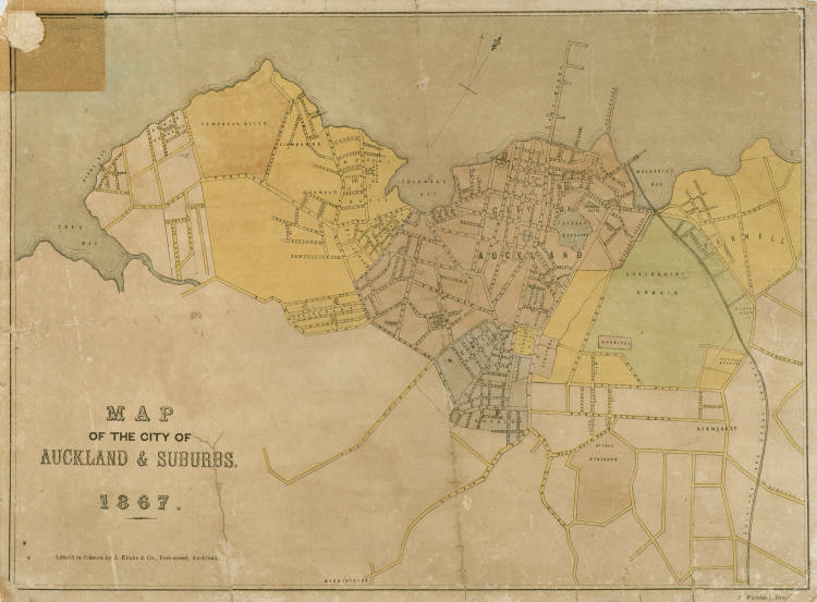 Map of the City of Auckland & Suburbs, J Evans & Co. (1867). [Auckland Libraries Heritage Map 4610].